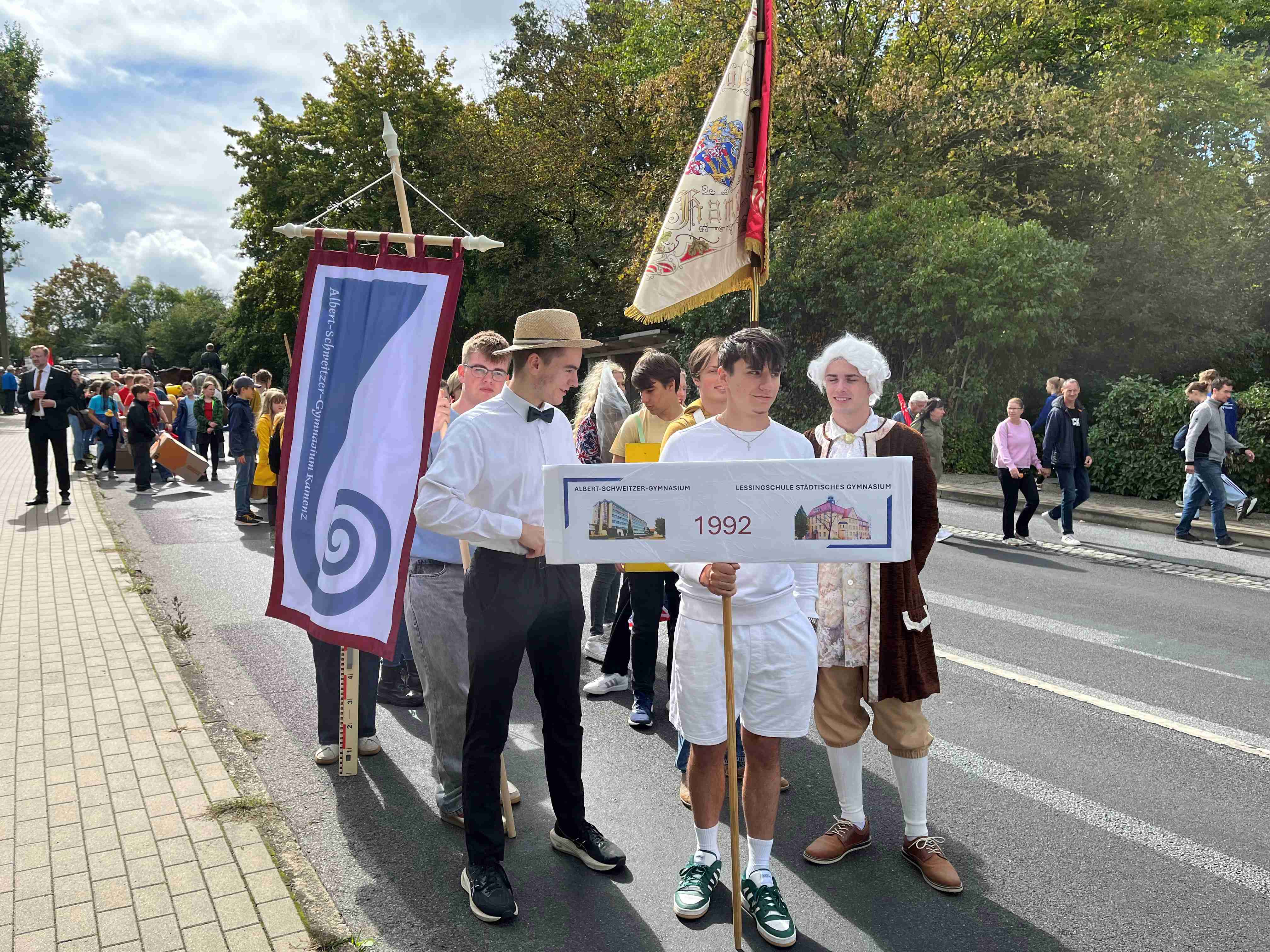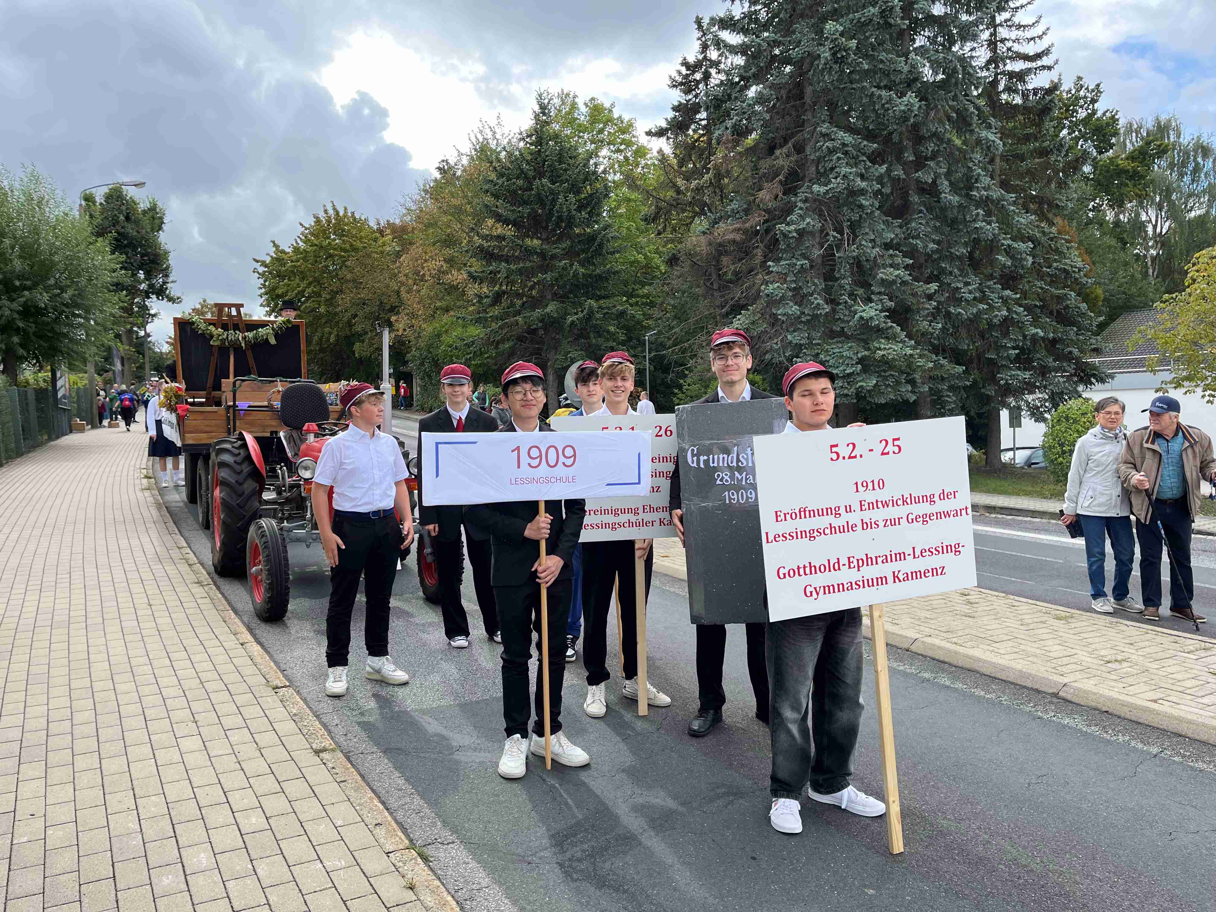 100 Schülerinnen und Schüler, unser stellvertretender Schulleiter Herr Dr. Rohrbach, 12 Lehrerinnen und Lehrer, die Schulsozialarbeiterin und ihre Praktikantin präsentierten das Bild unserer Schule zum Umzug anlässlich der 800 Jahrfeier der Stadt Kamenz.