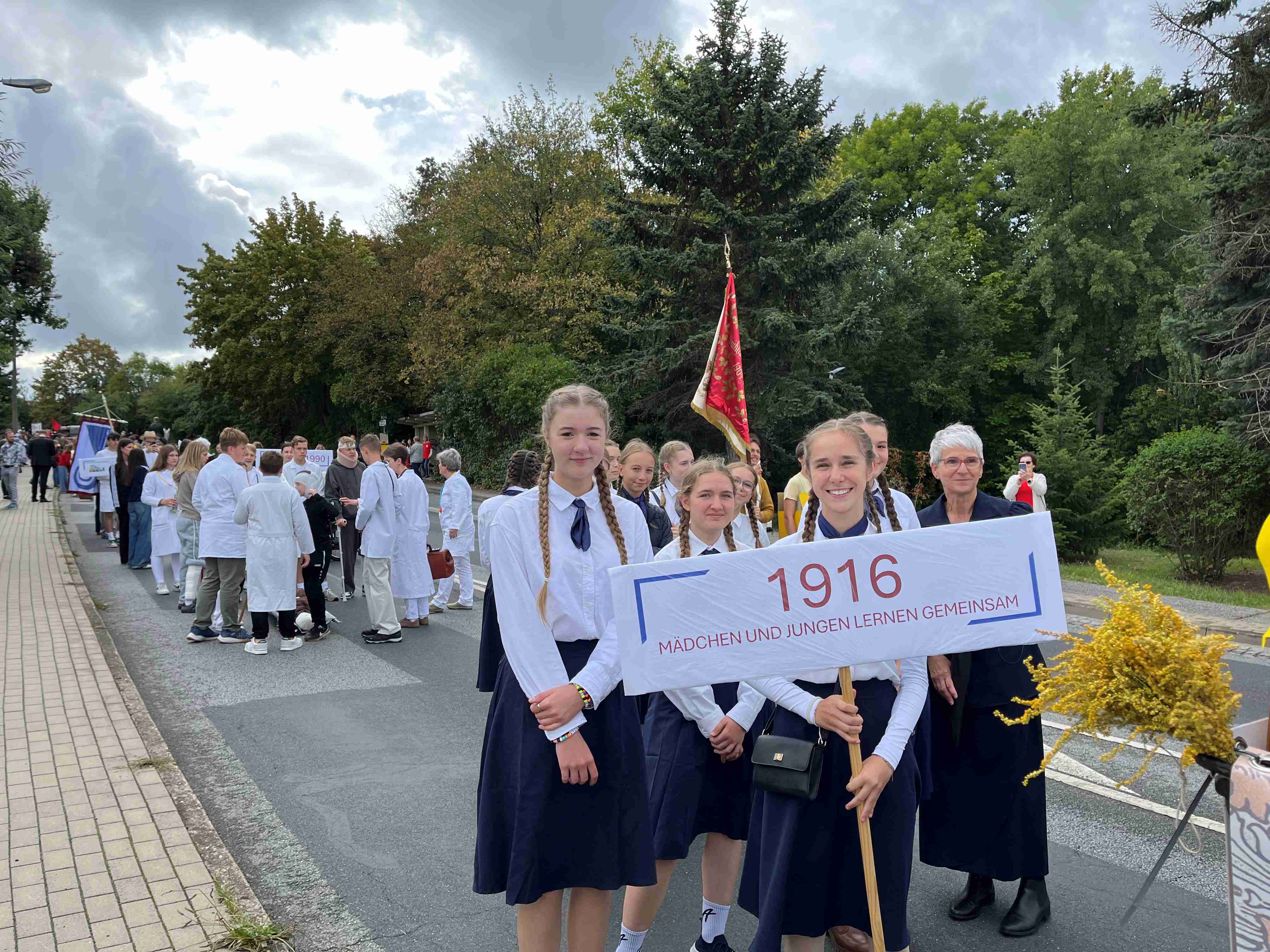 Auf 50 Metern Länge zeigten wir alles, was die Historie gymnasialer Bildung in Kamenz ausmachte.