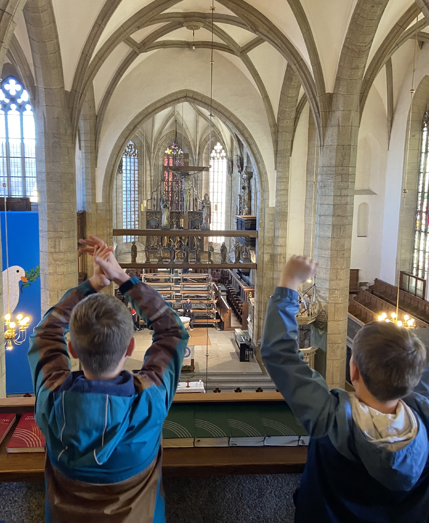 Anschließend zeigte er uns sowohl die neuen als auch die historischen Glocken der Kirche und erzählte ihre Geschichten. Zum Schluss hatten die Kinder Zeit, die Kirche auf eigene Faust zu erkunden und die Altäre und weitere Details zu entdecken.