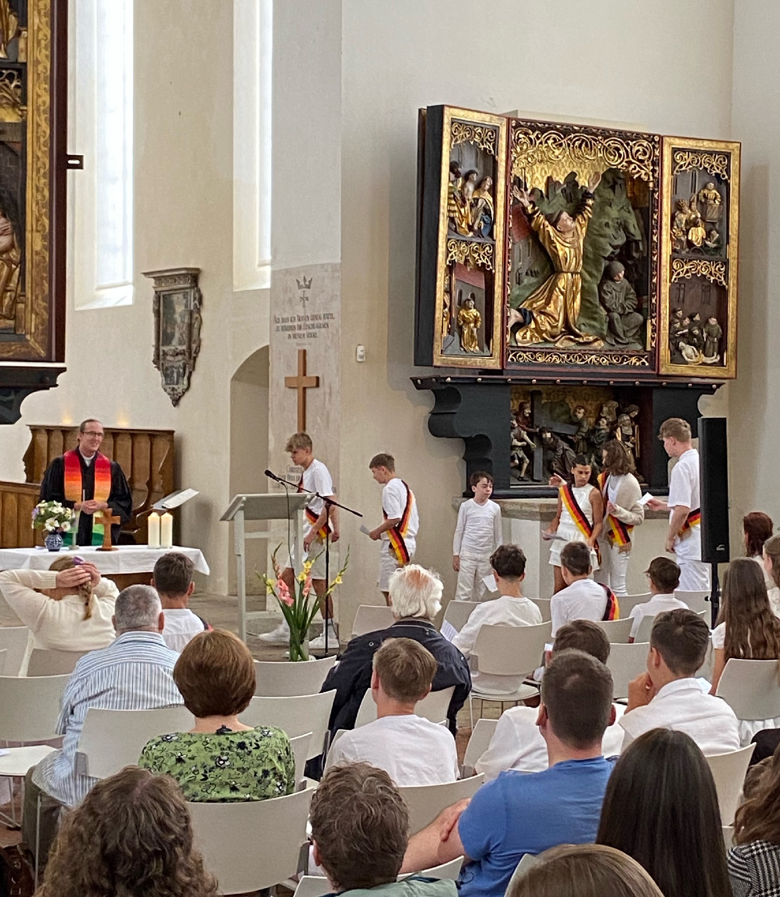 Einer der vielen Traditionen im Rahmen des Forstfestes folgend, fand am Montag, den 25.08.2025, in der Klosterkirche St. Annen die Forstfestandacht statt. Schüler der 8. Klassen waren aktiv bei der Planung und Durchführung beteiligt. Ihnen sei hiermit herzlich gedankt.